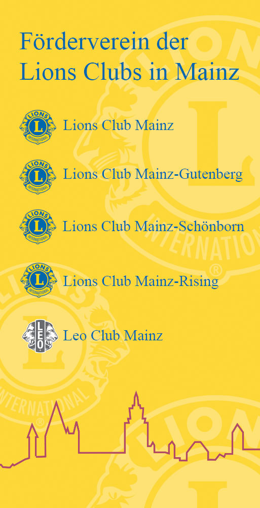 Mit dem Lions Club Mainz wurde am 8. November 1954 der erste Club in unserer Stadt gegründet. Es folgten am 19. September 1972 der Lions Club Mainz-Gutenberg und am 28. September 1981 der Lions Club Mainz-Schönborn. Alle drei Clubs haben jeweils eine Mitgliedschaft von rund 40 Personen aus unterschiedlichen Berufen. Zusammen mit ihren Partnern pflegen sie eine lionistische Freundschaft miteinander und arbeiten in ihren Clubs und clubübergreifend für die verschiedensten sozialen und kulturellen Projekte, die die Lions „Activitys“ nennen.